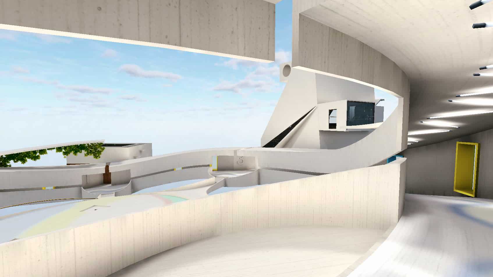 In a world without gravity, what kind of buildings would architects design? If the need for physical shelter disappears, does the need for psychological comfort remain? Would we still gravitate towards soft and welcoming surfaces? Would we behave differently inside small virtual corners than in large open areas where all the virtual eyes are on us? In this environment we designed for Arthur Digital, we aimed to investigate these issues and uncover the promise of virtual architecture.